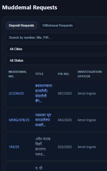 मुद्देमाल किंवा पुराव्याची प्रत्येक हालचाल डिजिटल पद्धतीने साखळीतील जबाबदारी रजिस्टर मध्ये नोंदवली जाते, ज्यामुळे सत्यता, जबाबदारी, आणि न्यायालयाने निर्धारित केलेल्या प्रक्रियेचे काटेकोर पालन सुनिश्चित होते.